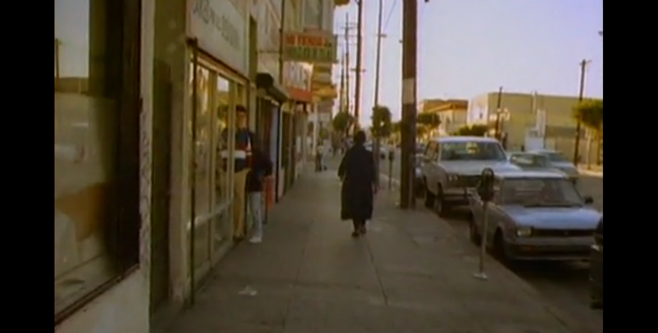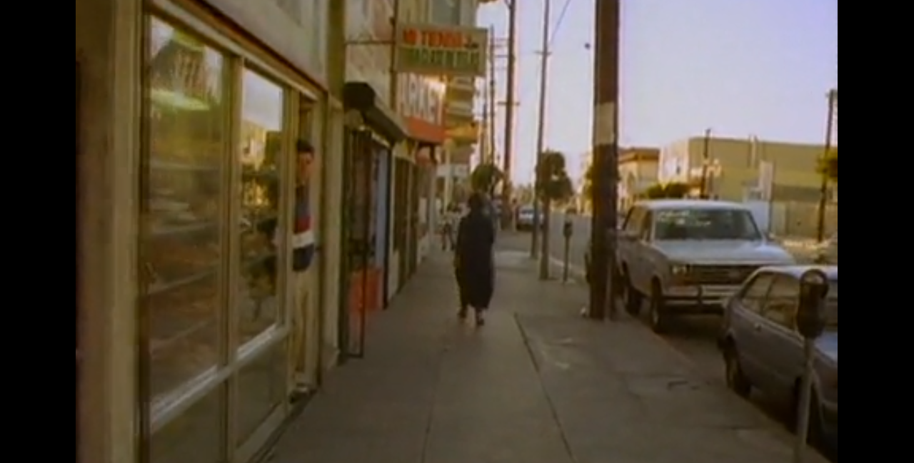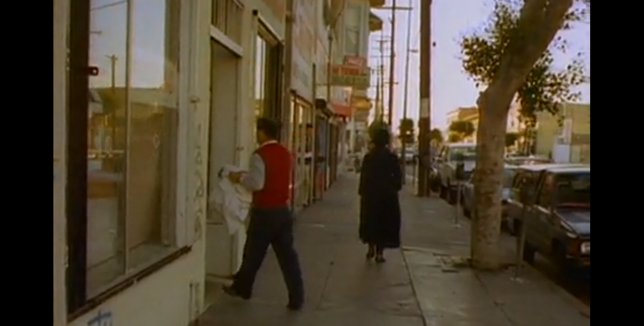 Throughout all her singing, along the paths of blocks as many as verses, crossings theirs, S.N. pours voice as seemingly directly as the first pressing of thought, though this be a video of a recording of a choice of a version of a writing of a setting of a series of a wording, and even this video, a choreography of a process of a slowed motion of a sped playback of a single take of an air. S.N. is the mystical apparition of a black pillar, a guide, catalyst, absence, emission, flow. And so sings; sings so, with what can only be recalled as eyes held closed, despite the obvious reality to the contrary: if we are to more tightly recall, as if she is to more tightly close her eyes, her eyes blink open: certainly we glimpse them opening at a step, to turn a corner, to cross the block, to avert the passers-by, sure as certain. But in the ease of recollection as slowed by the inverse speed of a frame rate slightly hastened before those eyes, they are only closed fringed crescents.